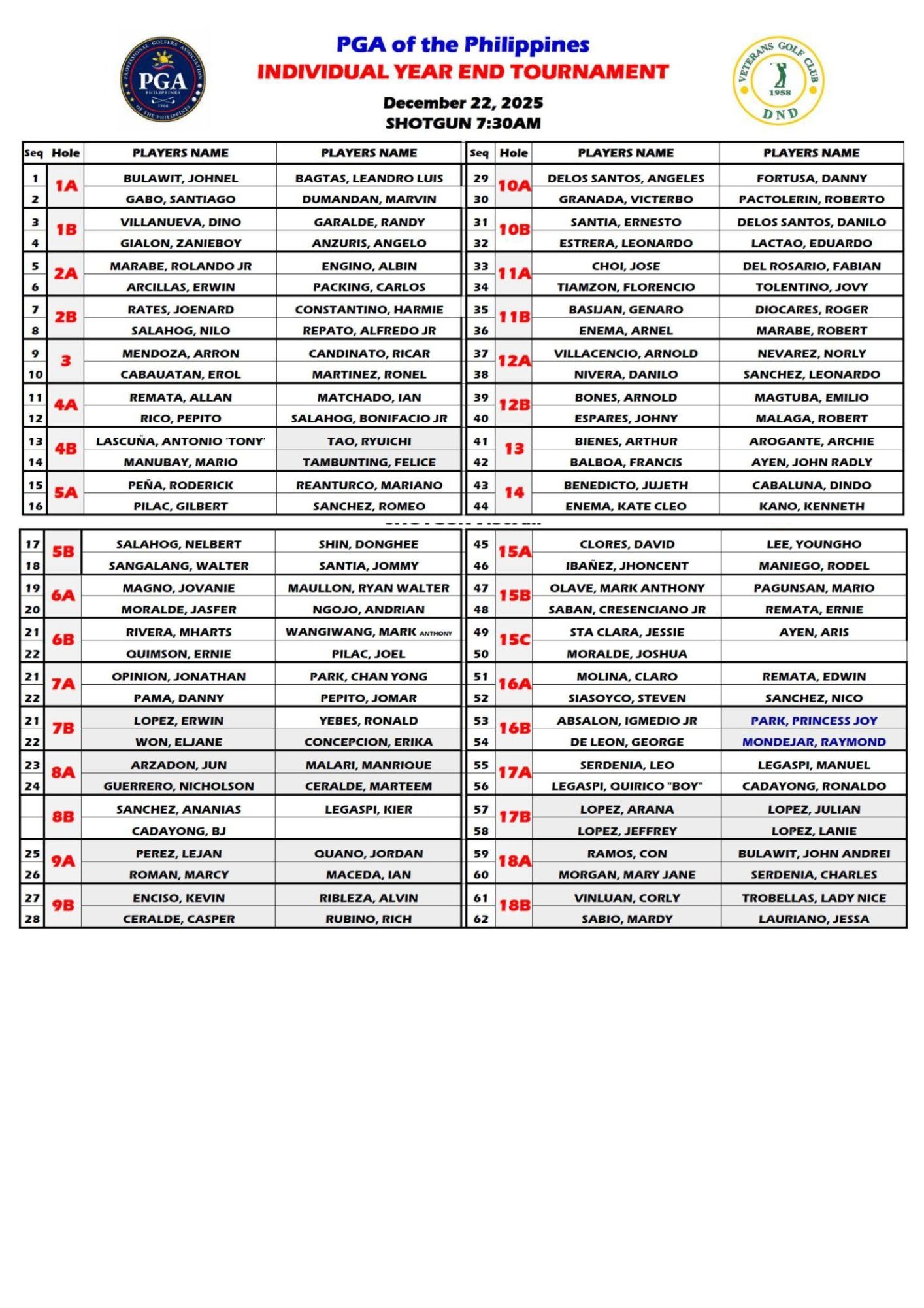 PGAP Individual Year-End Tournament